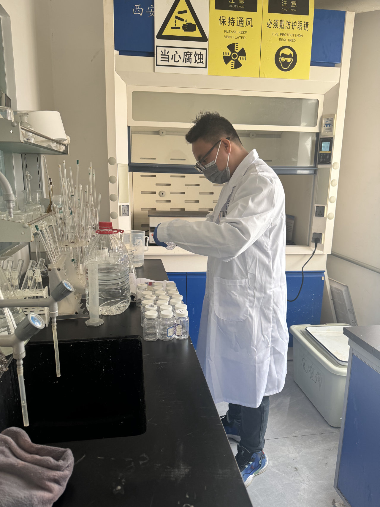 一、實(shí)驗(yàn)室正確佩戴個(gè)人防護(hù)裝置。