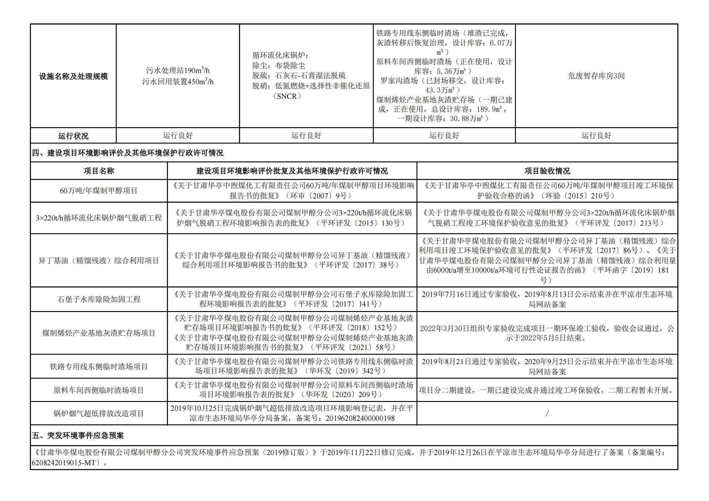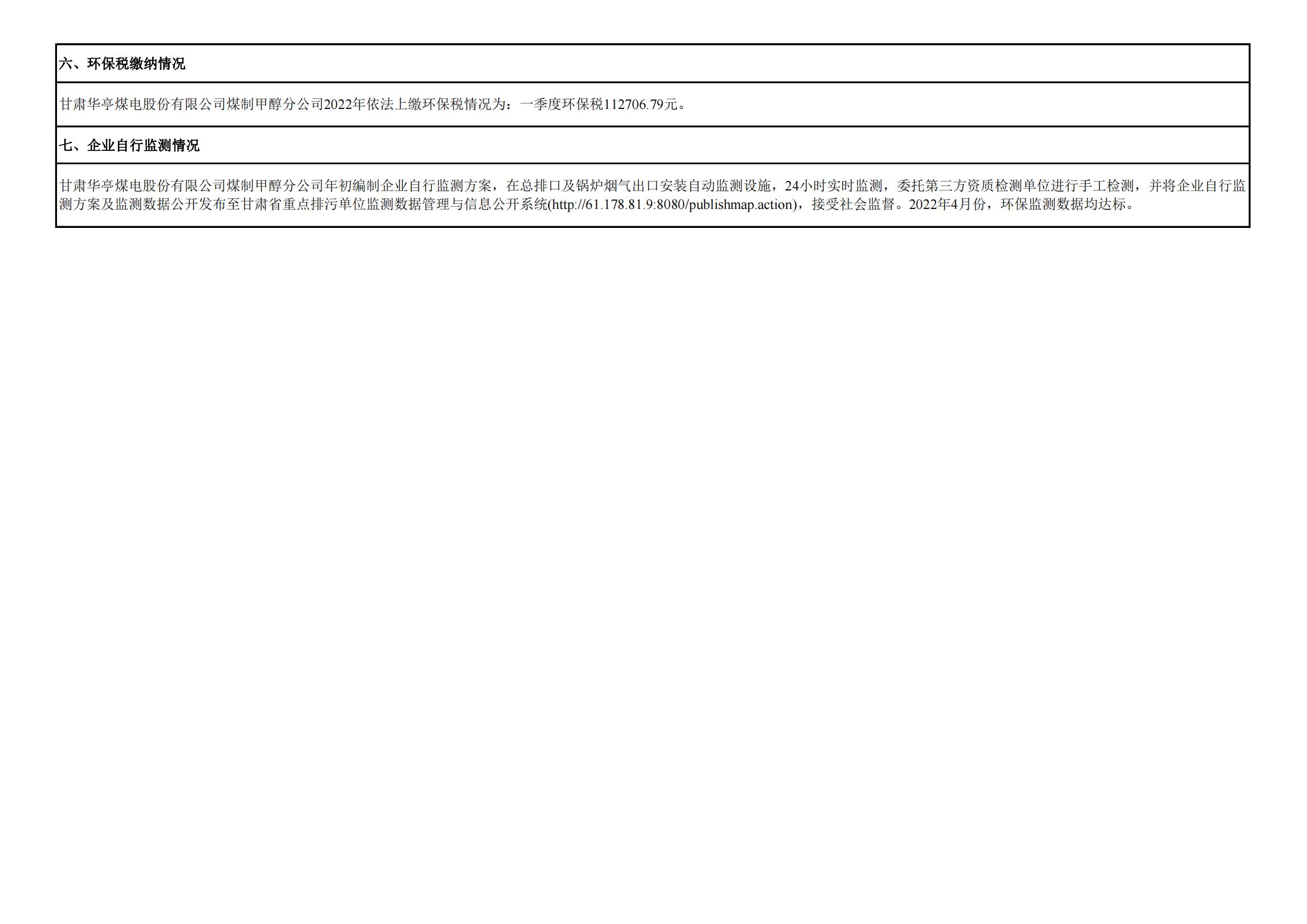 煤制甲醇分公司環(huán)境信息公開內(nèi)容(2022年4月)
